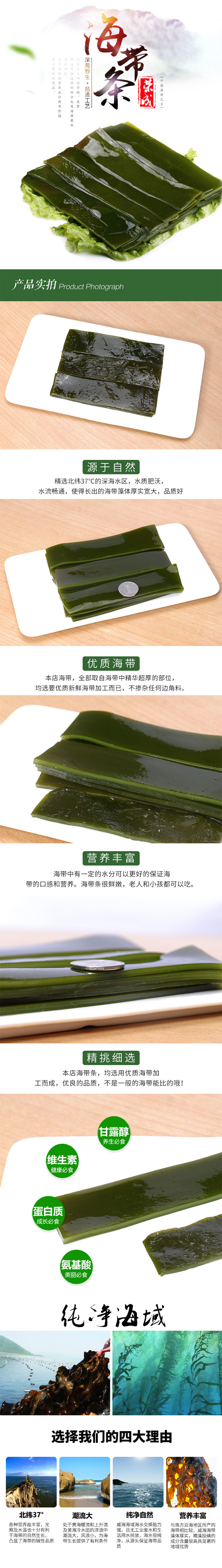 熗炒海帶精選4月脆嫩期愛倫灣海帶的前端生長部,切條分選。本產(chǎn)品厚薄均勻,嫩軟爽口,熗炒易熟。宜制作清炒海帶、肉絲海帶等熗炒類菜肴。